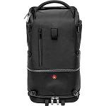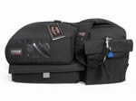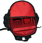 Mochila de transporte para camcorder y notebook; apertura frontal y superior; bolsillos exteriores para accesorios; separadores y correas con recubrimiento de espuma de poliuretano.