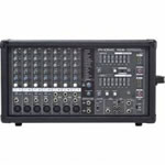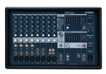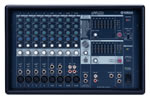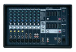 Consola potenciada stereo Yamaha; 8 canales mono con insert, 2 stereo. 4 envíos auxiliares (2 pre-post fader), 2 FX. Ecualizador de 3 bandas por canal. Unidad multiefectos dual de 16 FX c/u. Potencia 500W+500W / 4ohms; 325W+325W / 8ohms; 1000W / 8ohms bri