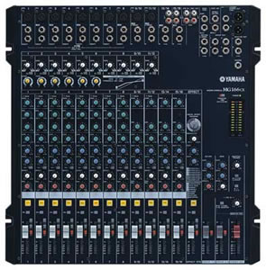 Consola Yamaha 16 canales de entrada. 10 entradas de micro + 4 de línea estereo. Preampli de micro. 8 insertos E/S. HPF. Conmutador de alimentación Phantom (+48V). 6 compresor. Eq de 3 bandas de barrido medio (ch 1-8). Conmutador iluminados CH ON. mezcla