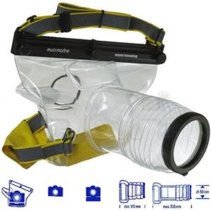 Cobertor flexible estanco para buceo Ewa-Marine p/cámaras AF-SLR con lentes de hasta 23cm de largo; hasta 20 metros de profundidad; construído en doble laminado de PVC; medidas 17-23(L)*17(W)*13,5(H)cm imprimirenviar a un amigo