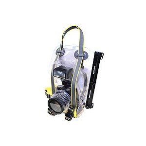 Cobertor flexible estanco para buceo Ewa-Marine p/cámaras SLR Canon 30D, Canon 5D, Nikon D1, Nikon D200 con flash; hasta 20 metros de profundidad; construído en doble laminado de PVC; usar con cámaras de 77mm y 82mm de diámetro; medidas 10 a 20(L)*22(W)*3 imprimirenviar a un amigo