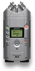 Grabador portátil stereo Zoom; graba 24-bit/96 kHz de audio digital y MP3 hasta 320kbps; 2 micrófonos a condensador calidad estudio con patrones X/Y; 2 entradas 1/4" con Phantom;