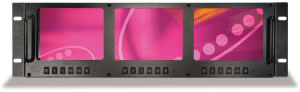 Monitores LCD Auvitec para rack 3 x 5,6" color NTSC-PAL; aspect ratio 4:3; resolución 960x234; 2 entradas de video compuesto BNC; 1 salida de video BNC; gabinete metálico; DC 12V; medidas 489(W) x 132(H) x 66(D) mm imprimirenviar a un amigo
