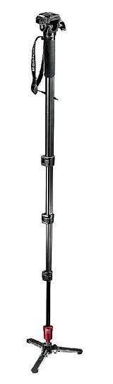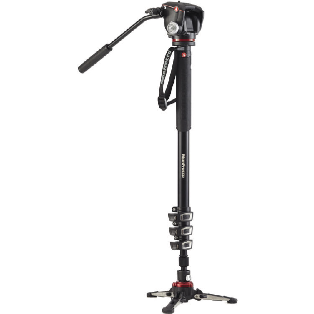 Monopié Manfrotto • Peso soportado: 5,00kg • Alt. máx: 200cm • Peso: 2,10kg • 4 secciones • incluye base con patas fluidas + cabezal MVH500.