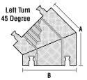 Curva de 45° izquierda para protectores de 5 canales internos; construido en Poliuretano de alta resistencia; aislante eléctricamente; medidas 62(A) x 50(B) x 5(Alto); Peso: 5kg imprimirenviar a un amigo