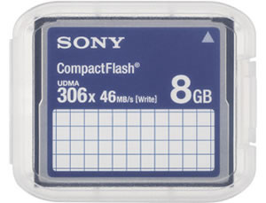 Tarjeta de memoria de estado sólido Sony CompactFlash para uso profesional de 8GB de capacidad; graba hasta 36 minutos; velocidad de escritura 46 MB/s imprimirenviar a un amigo